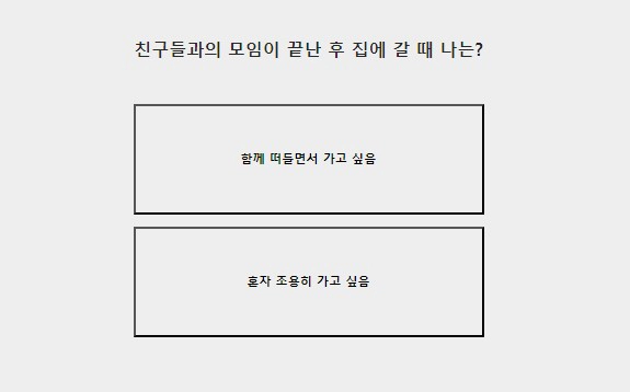 - 혼자 조용히 가고 싶은 or 함께 떠들면서 가고 싶음