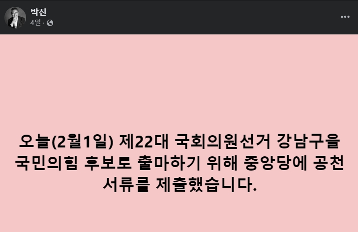 박진 전 장관의 지역구 강남을에 윤핵관중에 윤핵관이라 평가받는 이원모 대통령실 인사비서관이 공천 신청을 해 당내 공천 경쟁이 치열할 것으로 예상되고 있습니다.